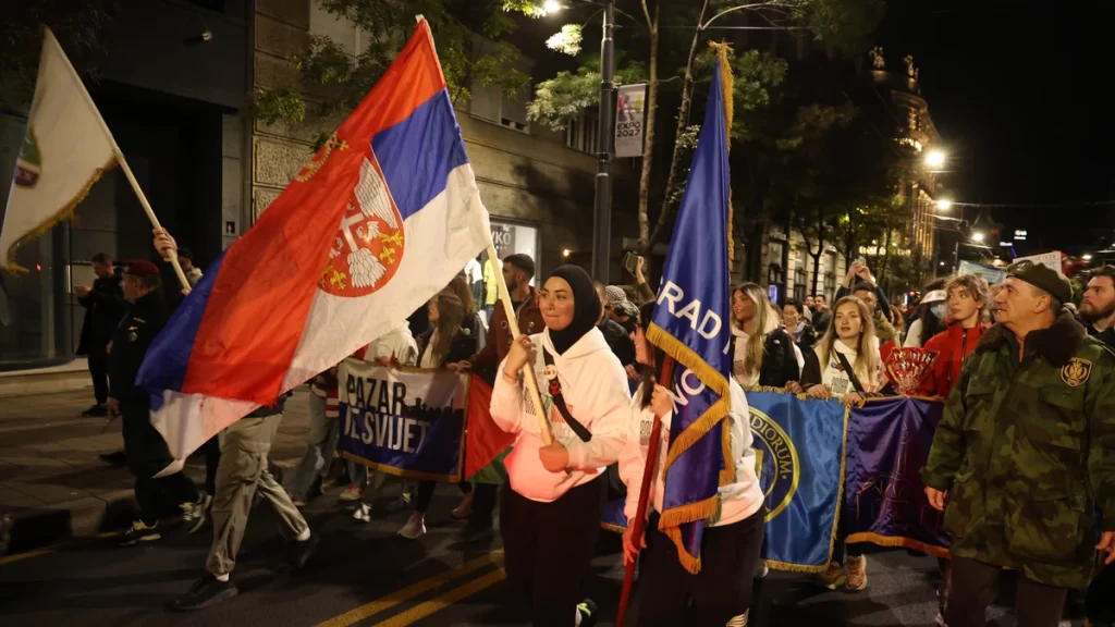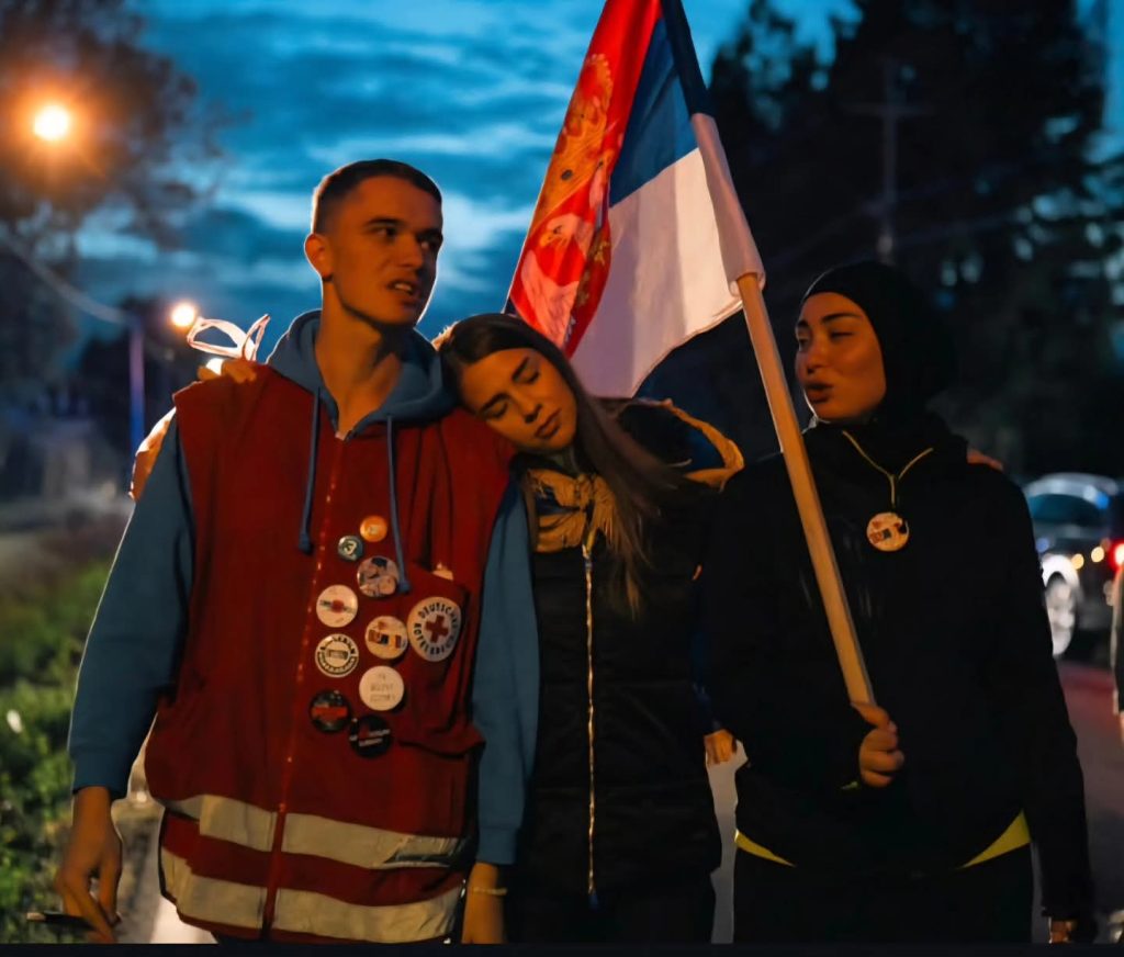 Колона пазарских студената у којој је и Амар управо је стигла у Београд прешавши пешке више од 300 километара.
